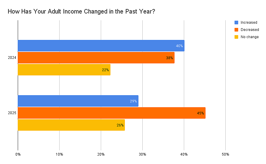 This percentage calculation excludes respondents for whom 2025 was their first year in adult.